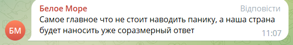 - "Самое главное, что не стоит наводить панику, а наша страна будет наносить уже пропорциональный ответ"