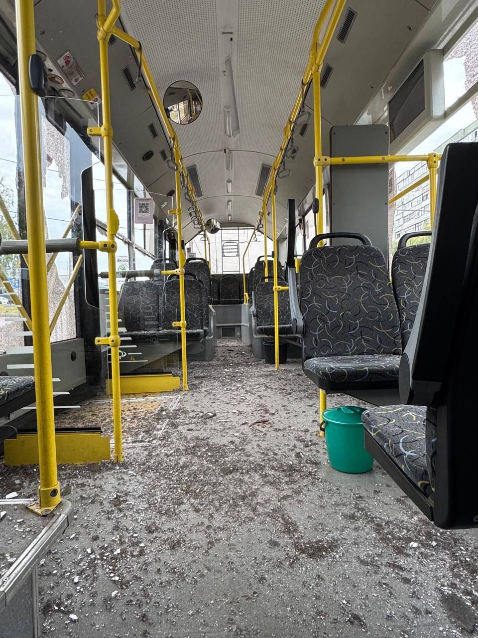 В результате взрывной волны в транспортном средстве выбито 20 окон и повреждена обшивка. На момент удара в салоне находились шесть пассажиров,