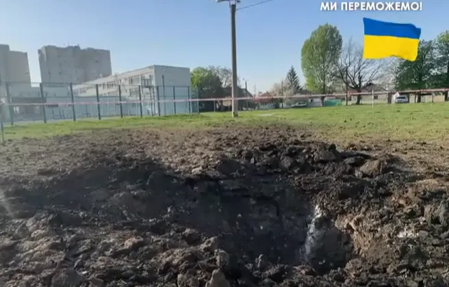 Одно из мест попаданий – обычная футбольная площадка вблизи школы. Рядом расположено много жилых многоэтажек.