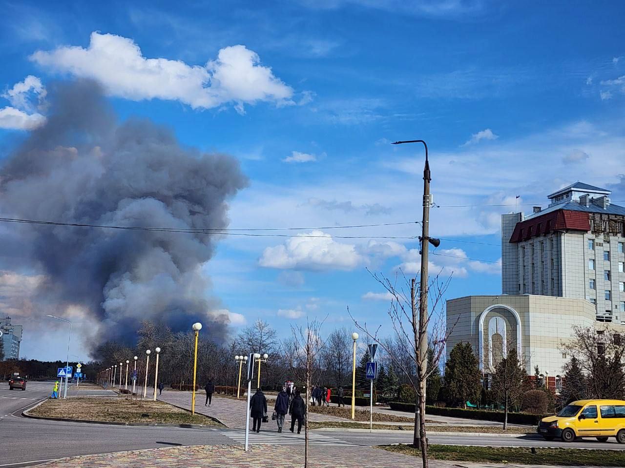 Федоров в 14:23 8 марта обнародовал фото из Энергодара, где видно, что над городом поднялся черный дым.
