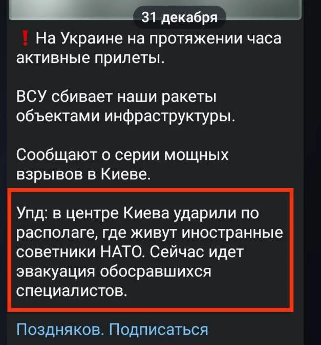 В результате российской ракетной атаки днем 31 декабря 2022 поврежден дворец "Украина" в центре Киева. Также был "прилет" в отель рядом.