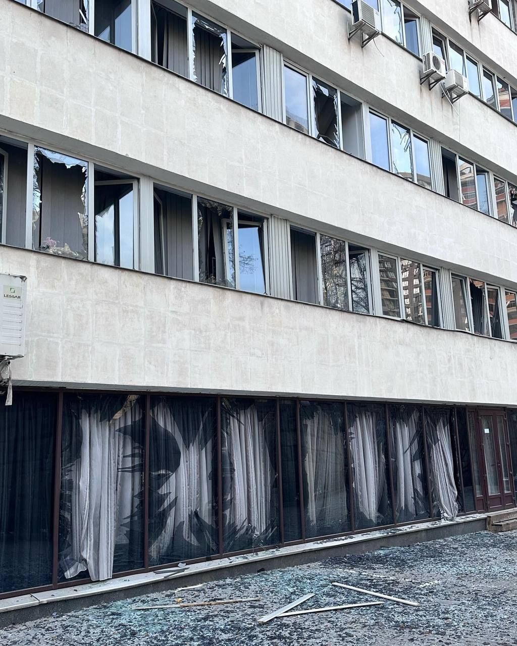 В офисе Президента показали последствия атаки по столице Украины. Российские оккупанты попали в гостиницу в центре Киева.
