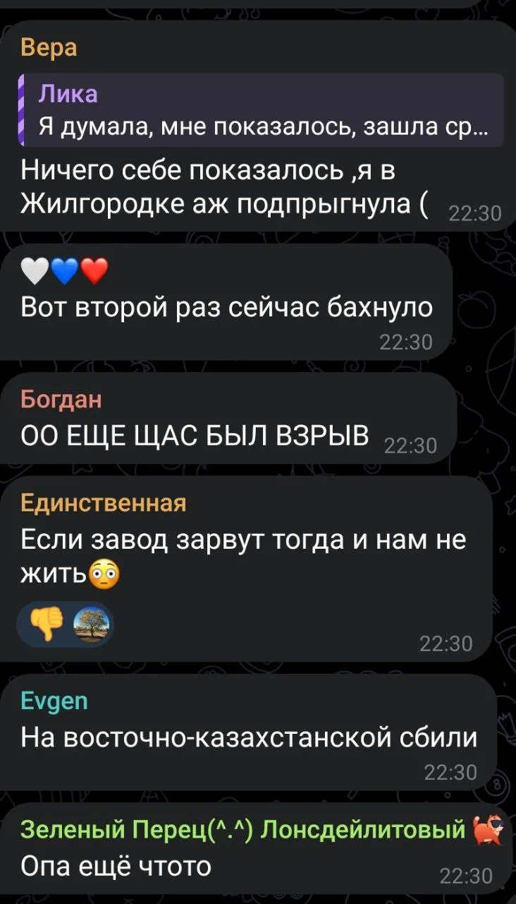 Россияне рассказывают, что "в окошко" увидели огромный огненный шар, и теперь "в ужасе". И говорят: если взорвут завод, то и им не жить. Правда, не совсем понятно, как это связано.