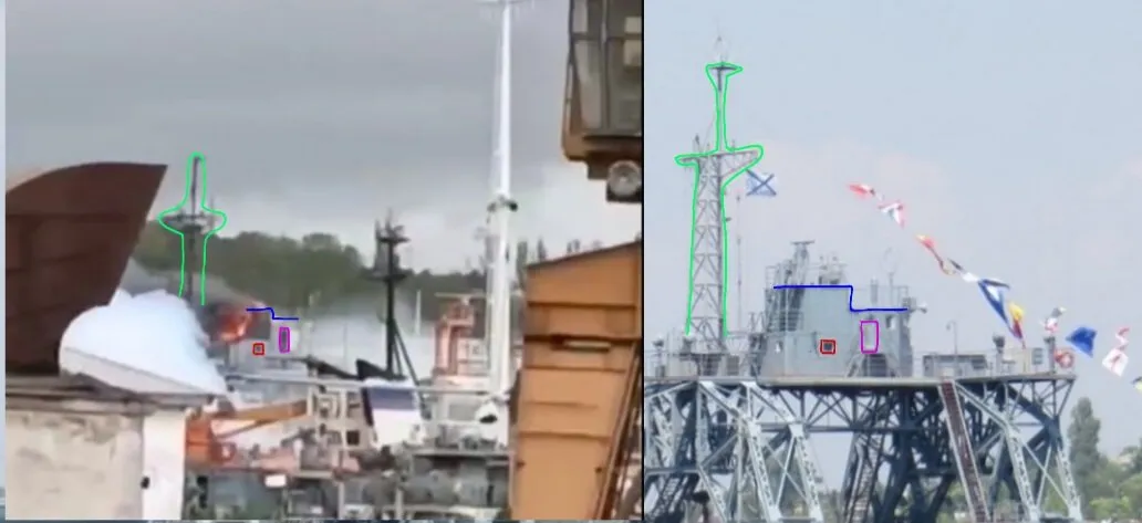 OSINT-разведка проанализировала видео пожара, которое появилось в сети. Вероятно, во время атаки был поврежден спасательный военный корабль "Коммуна".