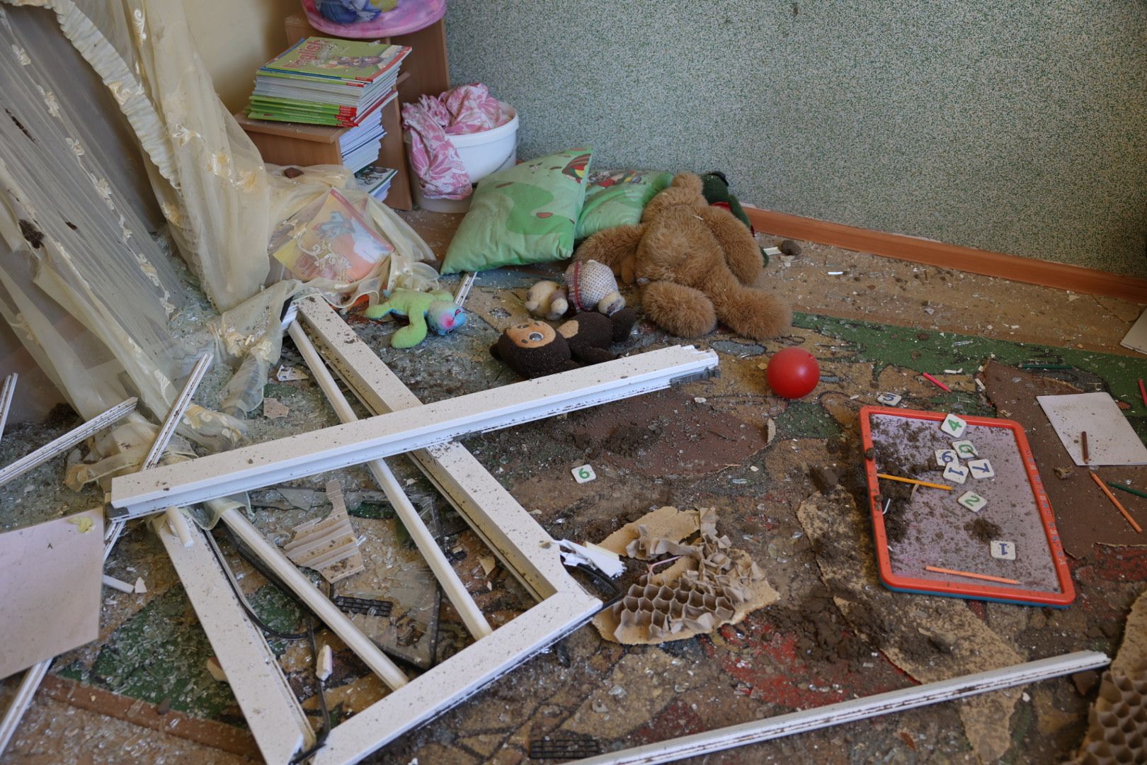 Одна из ракет попала по территории детского сада, получило повреждения здание детсада.