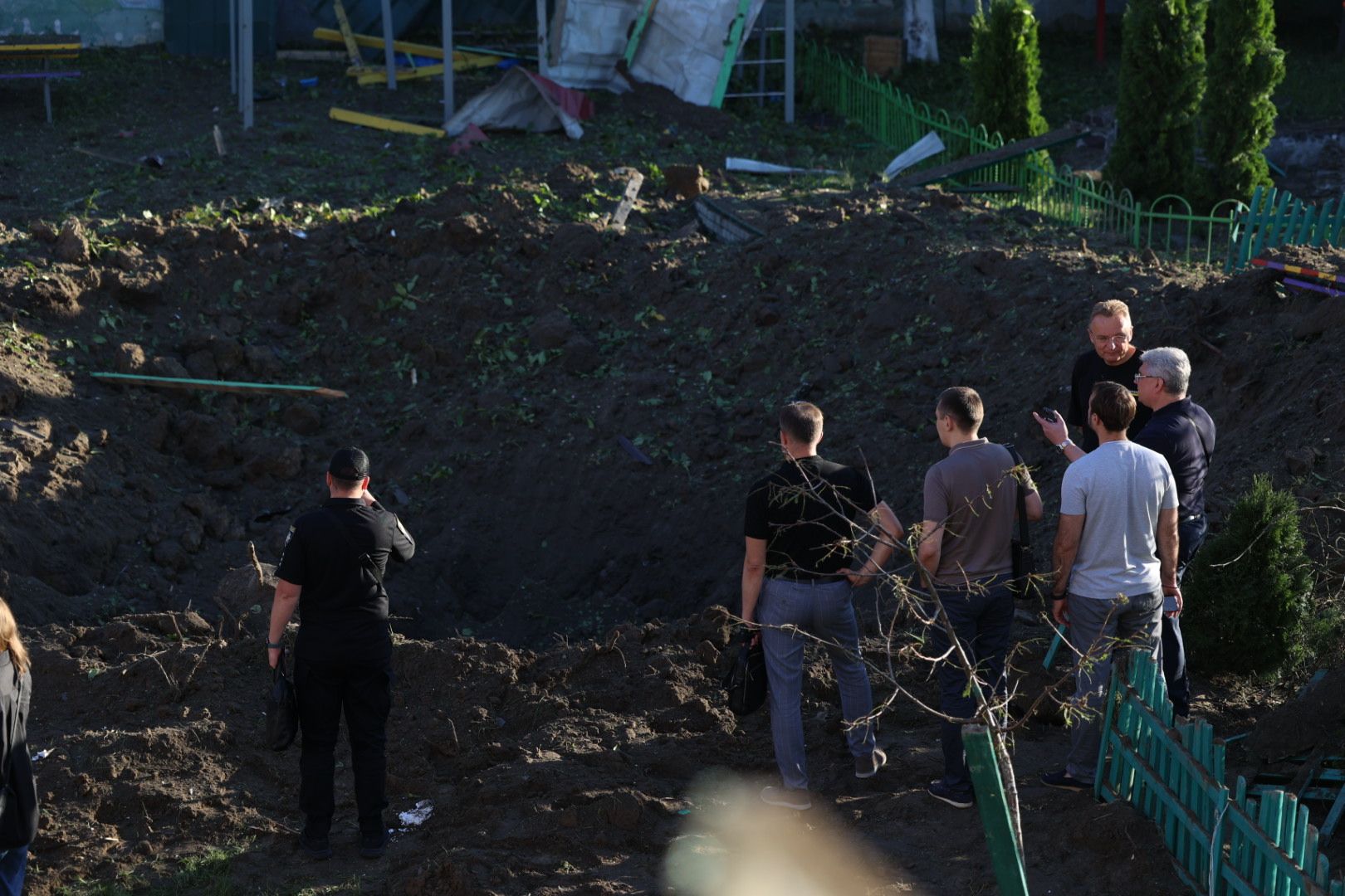 Мэр Львова Андрей Садовый во время брифинга рассказал, что на месте попадания ракеты на территории садика образовалась воронка диаметром 20 метров и 9 метров в глубину. По его словам, там еще есть остатки ракеты.