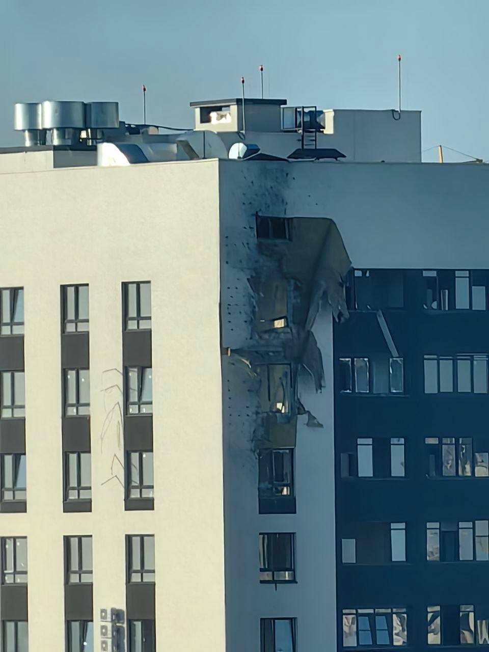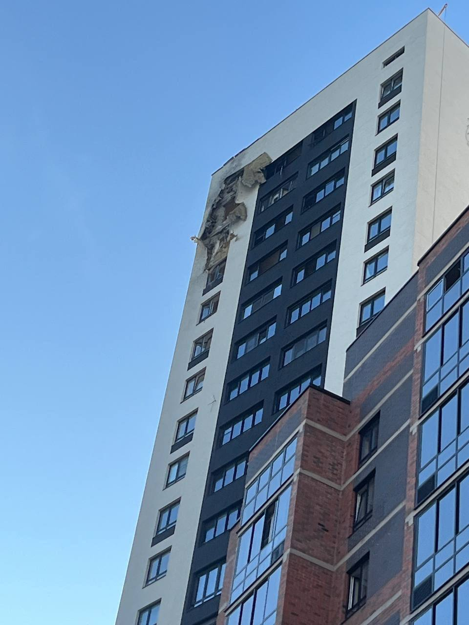 По словам Гусева, один БПЛА во время падения повредил фасад верхних этажей жилого дома. В многоквартирном доме якобы выбиты стекла в нескольких квартирах.