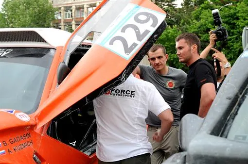 Церемония открытия началась с парада спортивной техники и проезда всех экипажей через стартовый подиум.