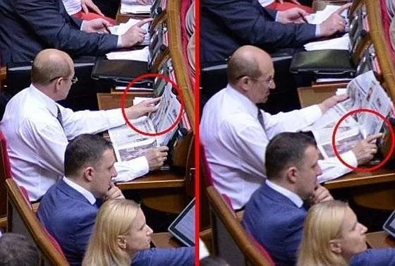 Как сообщает Gazeta.ua, сегодня во время вопросов к правительству Яценюк поднялся в ложу прессы, где одна из журналисток ему показала распечатки фото со вчерашнего заседания. На снимках зафиксировано "кнопкодавство" соратниками Яценюка.