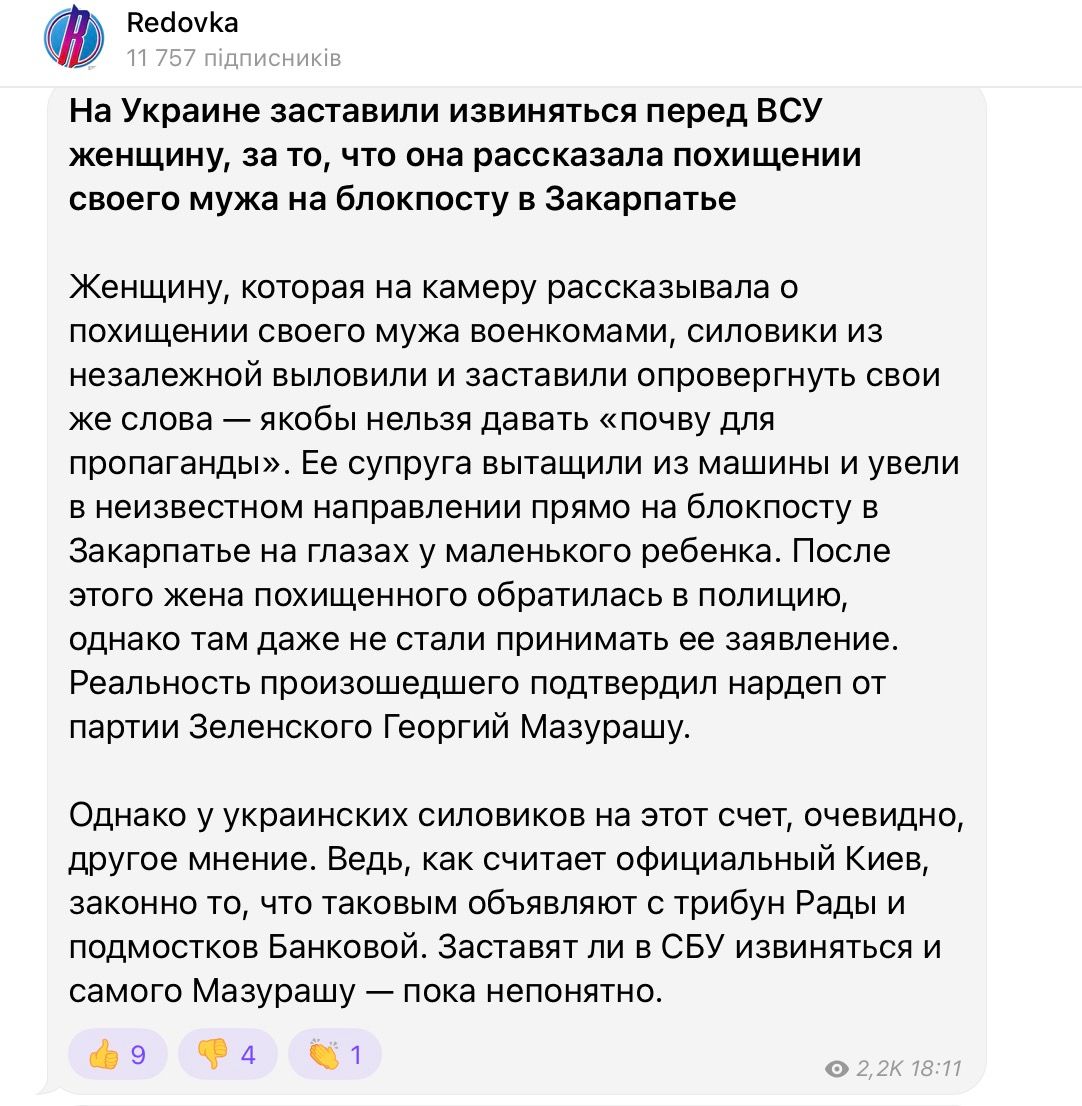 Таким информационным поводом не могли не воспользоваться кремлевские "журналисты". Вражеские медиа и телеграм-каналы со ссылкой на Мазурашу и эту женщину начали распространять новость о том, что на Закарпатье военные "украли мужчину", а Служба безопасности "заставила его жену" извиняться перед камерой.