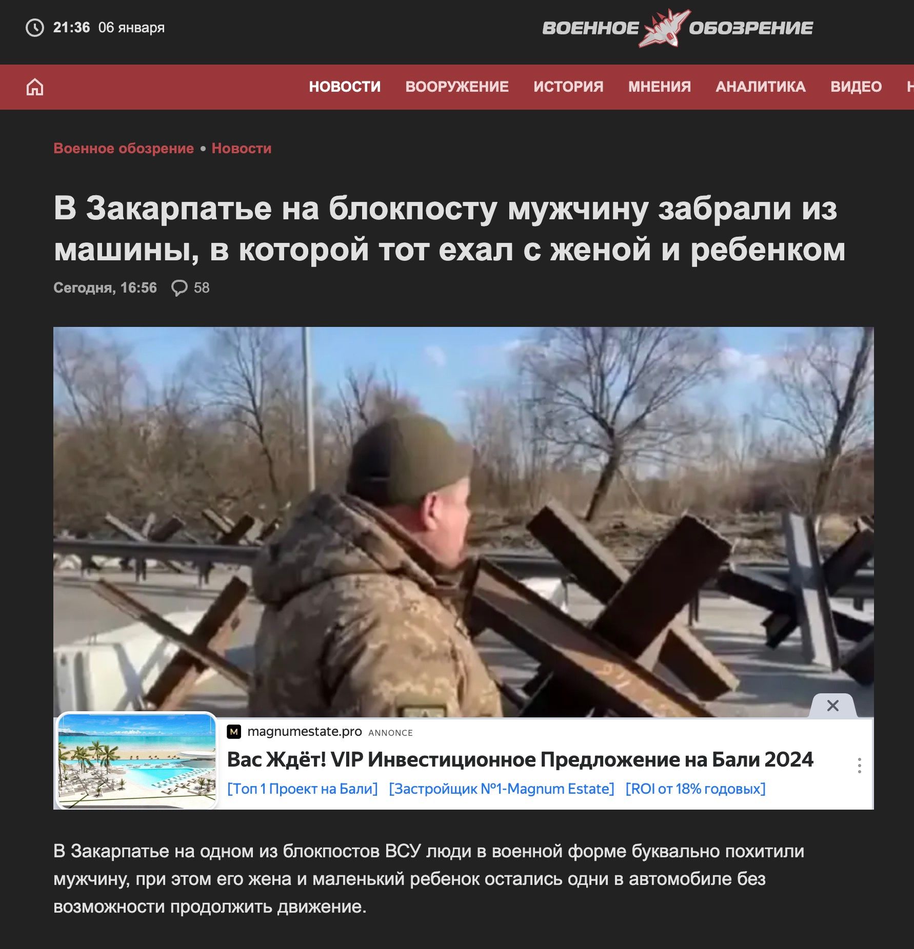 Российские СМИ начали распространять новость о "похищении мужчины работниками ТЦК" / Скриншоты сделаны 24 Каналом