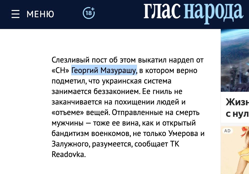 Мазурашу написал об этой истории и назвал работников ТЦК бандитами / Скриншот сделан 24 Каналом