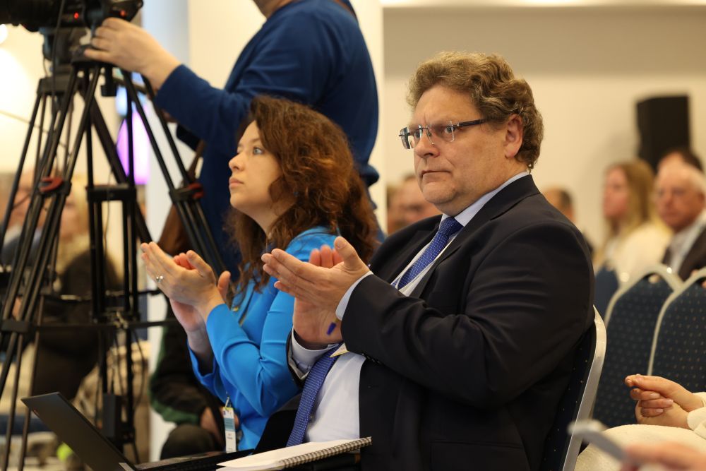 Участники конференции также поблагодарили главу государства аплодисментами за то, что он не подписал закон, вредный для общин и для градостроительства в Украине.