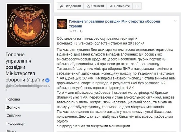Так, согласно сообщению, "заместитель министра обороны ДНР по материально-техническому обеспечению" осуществлял инспекционную поездку по соединениям и частям первого армейского корпуса (Донецк) Вооруженных сил России.