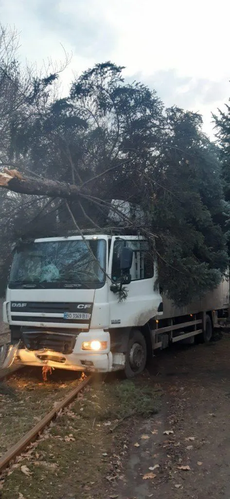 Грузовик с деревом на путях в Запорожье / Фото IPnews +