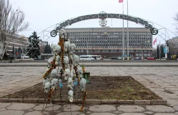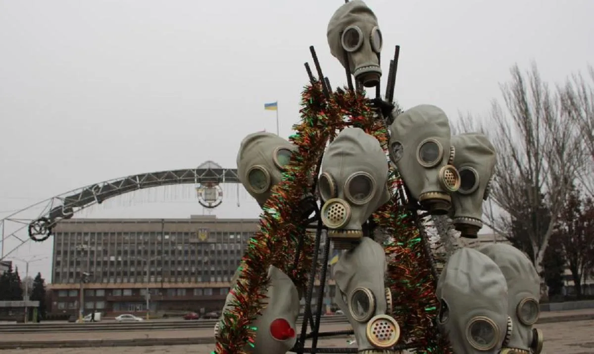 В Запорожье установили елку из противогазов / Фото "Радио Свобода"