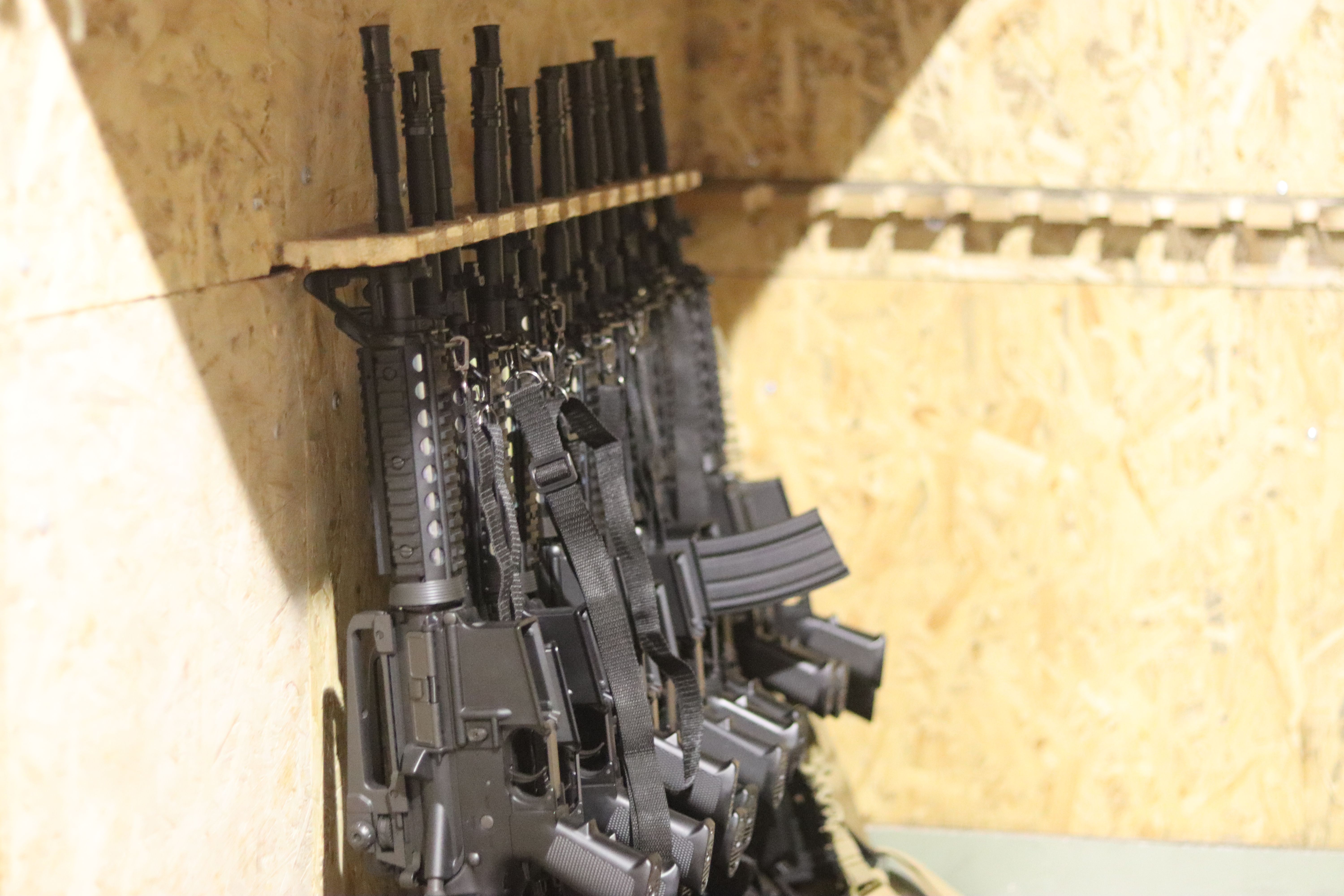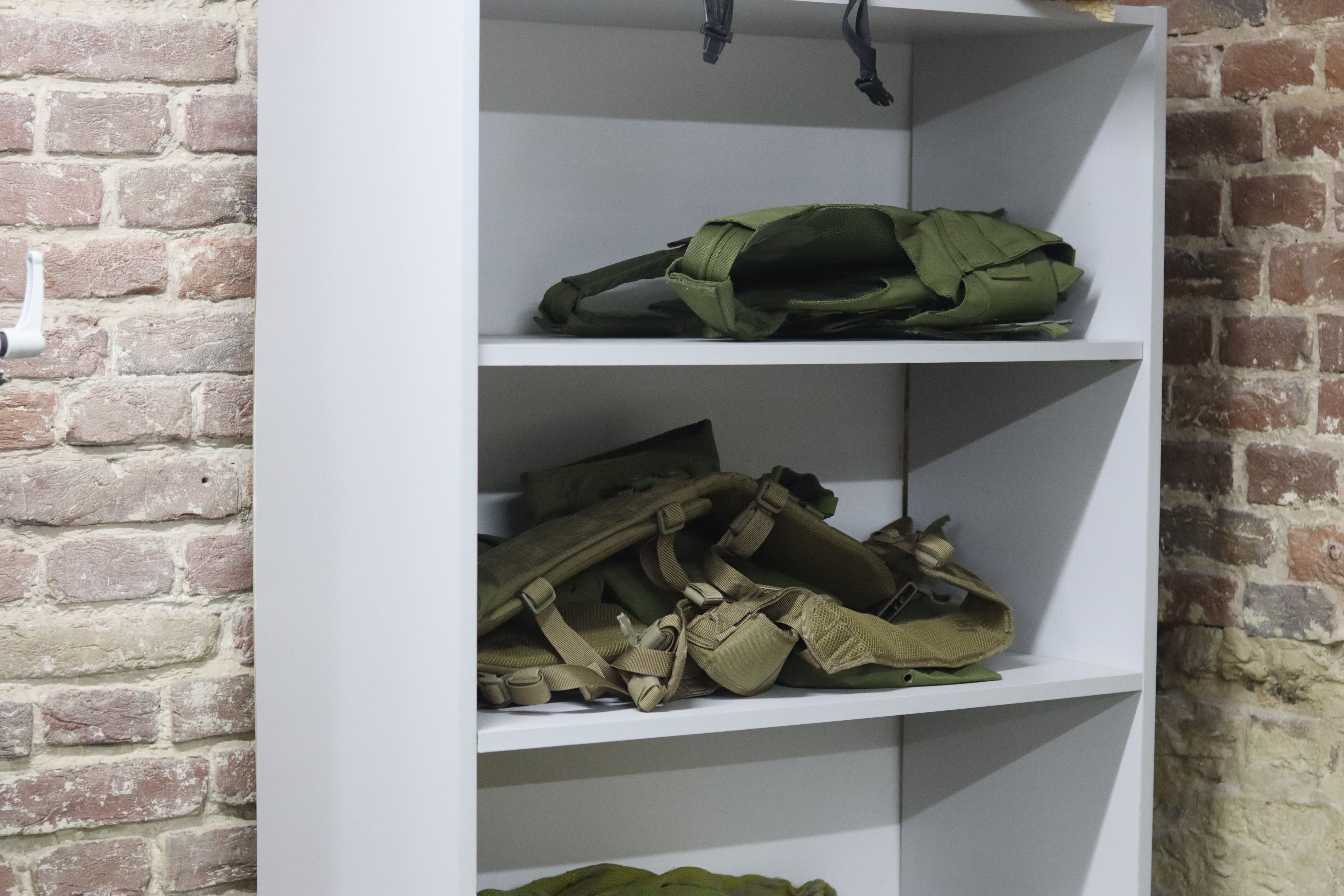 Кроме того, есть немало оружия: страйкбольные ружья, муляж автомата нового образца, учебные гранаты. Есть каски, бронежилеты и комбинезоны, а также турникеты и другие необходимые вещи для оказания первой помощи.