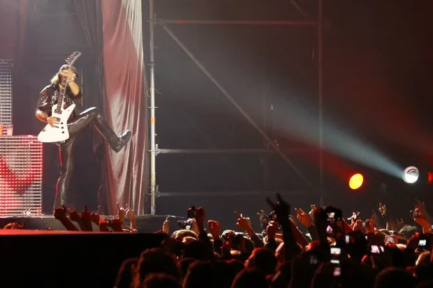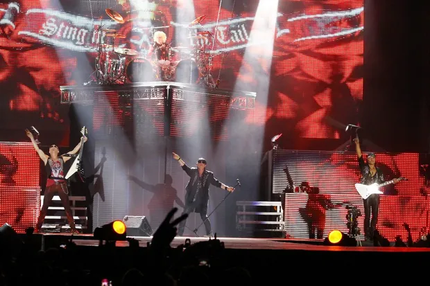 Майже дві години й близько 20 найвідоміших хітів групи, які супроводжувались спецефектами (до кожної пісні у додаток – набір піротехнічних засобів) й відеорядом (до речі, все обладнання, включно зі сценою і світловим й звуковим обладнанням, група возить із собою по всьому світі). 60-річні дідусі доволі жваво стрибали по сцені, роздаючи то барабанні палички від Джеймса Коттака, то медіатори від Рудольфа Шенкера, Маттіаса Ябса та Павела Мачіводи, а то й повітряні поцілунки від вокаліста Клауса Майне молодим фанаткам, які з-під сцени простягали йому букети троянд.