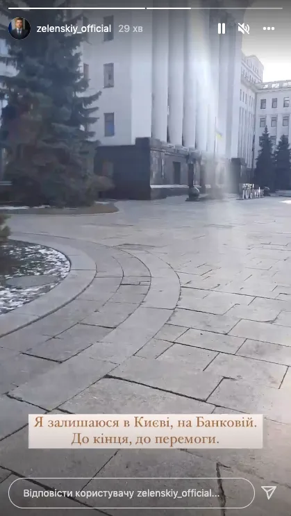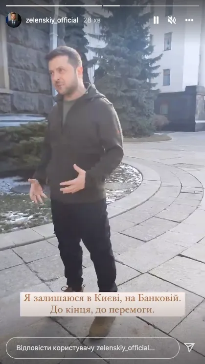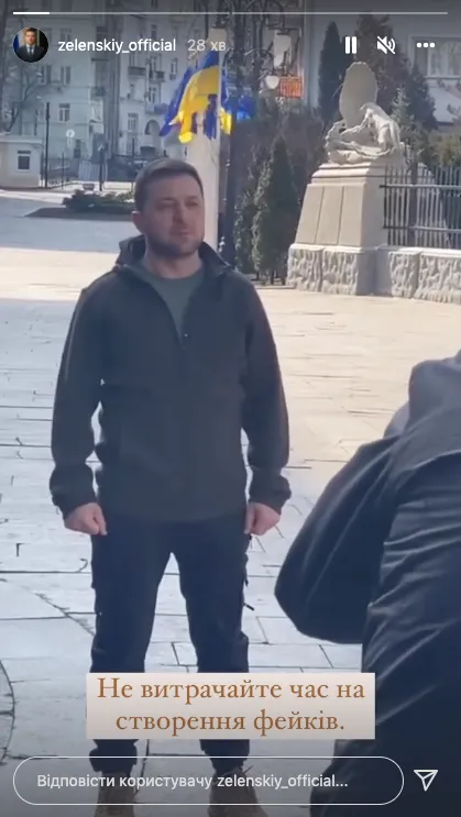 Очевидно, сторис сняли 11 марта 2022 года, именно тогда, когда глава государства записывал утреннее обращение к украинцам на улице Банковой. Там находится здание Офиса президента, где сейчас работает глава государства и его команда.