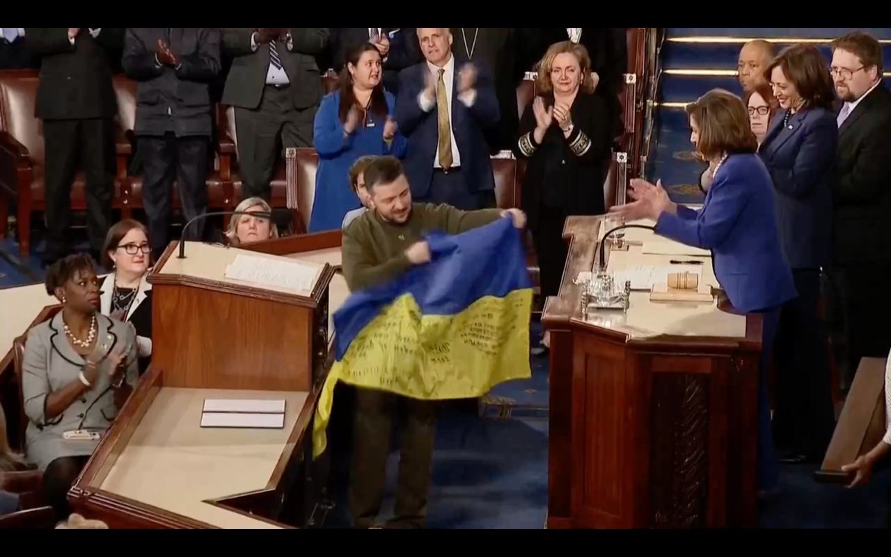 Зеленский передал конгрессменам флаг из Бахмута / Скриншоты с видео: