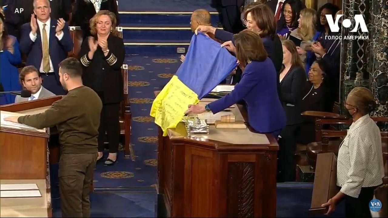 Зеленский передал конгрессменам флаг Украины, полученный от военных из Бахмута. Это знак благодарности за военную помощь Штатов. 24 канал.