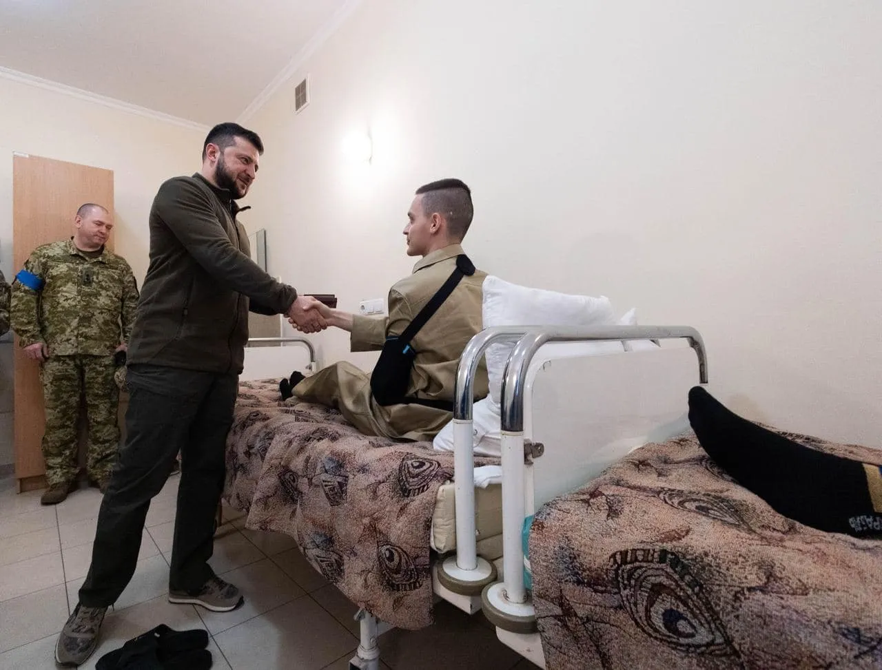 Зеленский посетил пограничников, проходящих лечение в Главном военно-медицинском клиническом центре. Они получили ранения в боях за Харьков, Чернигов, Гостомель и во время столкновений с ДРГ врага.