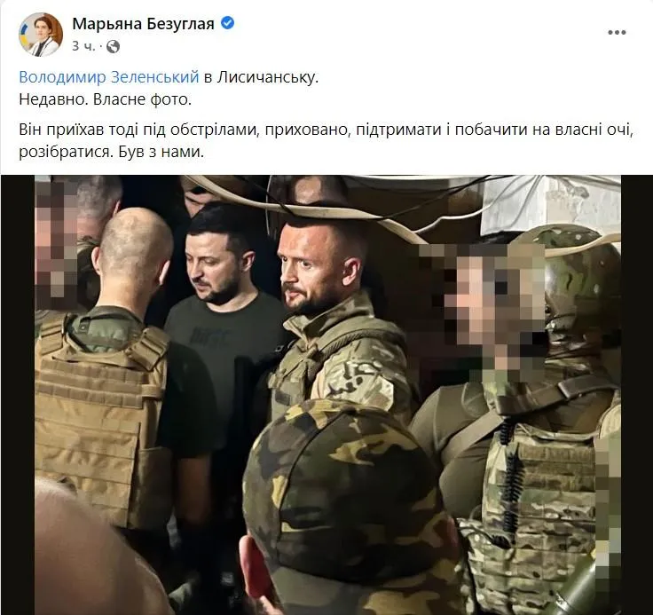 Впоследствии детали поездки обнародовала нардеп от "Слуги народа" Марьяна Безуглая. При этом она опубликовала фотографии президента на передовой. Нардеп отметила, что поездка прошла недавно.