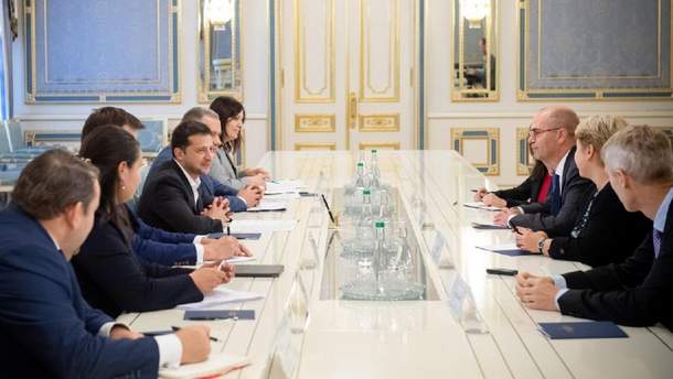 Вместе с Зеленским на встречу с представителями МВФ пришли премьер Алексей Гончарук и министр финансов Оксана Маркарова.
