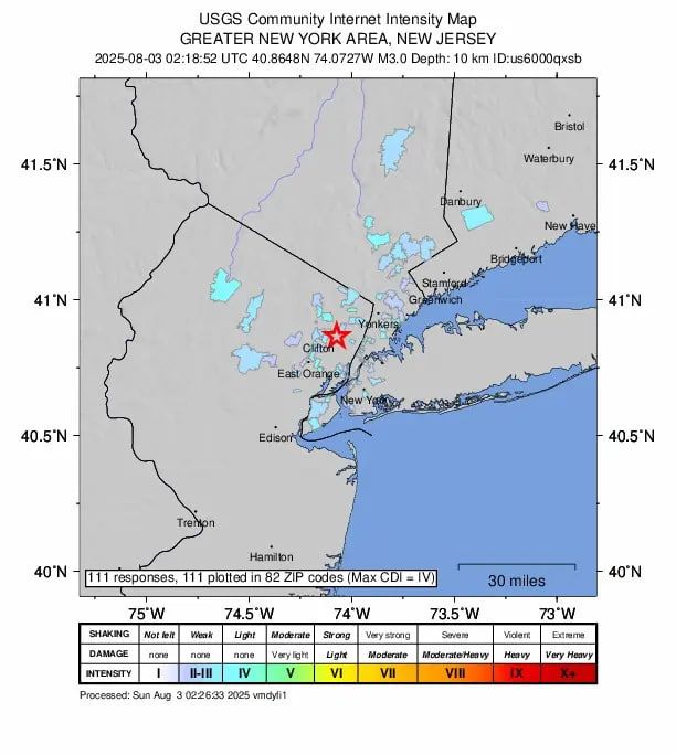 - Информации о повреждениях или пострадавших нет, хотя толчки ощущались в разных частях Нью-Йорка и Нью-Джерси, включая Манхэттен и Стейтен-Айленд.