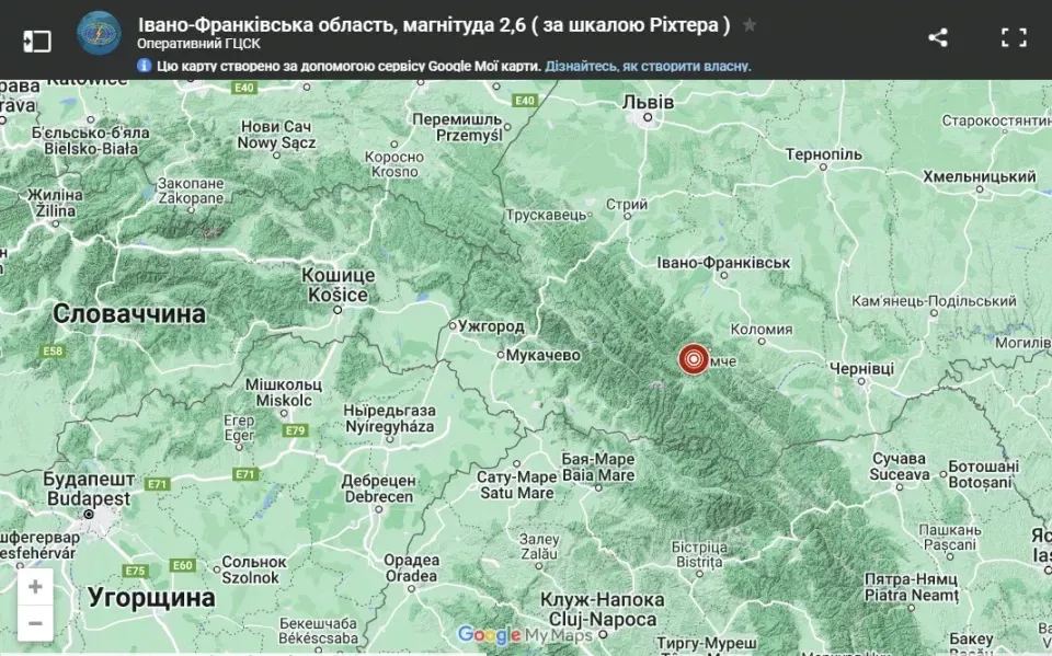 На границе Закарпатья и Прикарпатья зафиксировали землетрясение / Скиншот Главного центра специального контроля