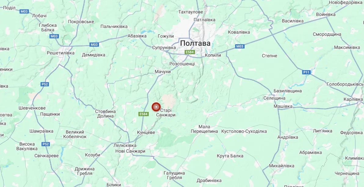 Так, землетрясение было зарегистрировано в районе населенного пункта Старые Санжары, Полтавского района, Полтавской области.