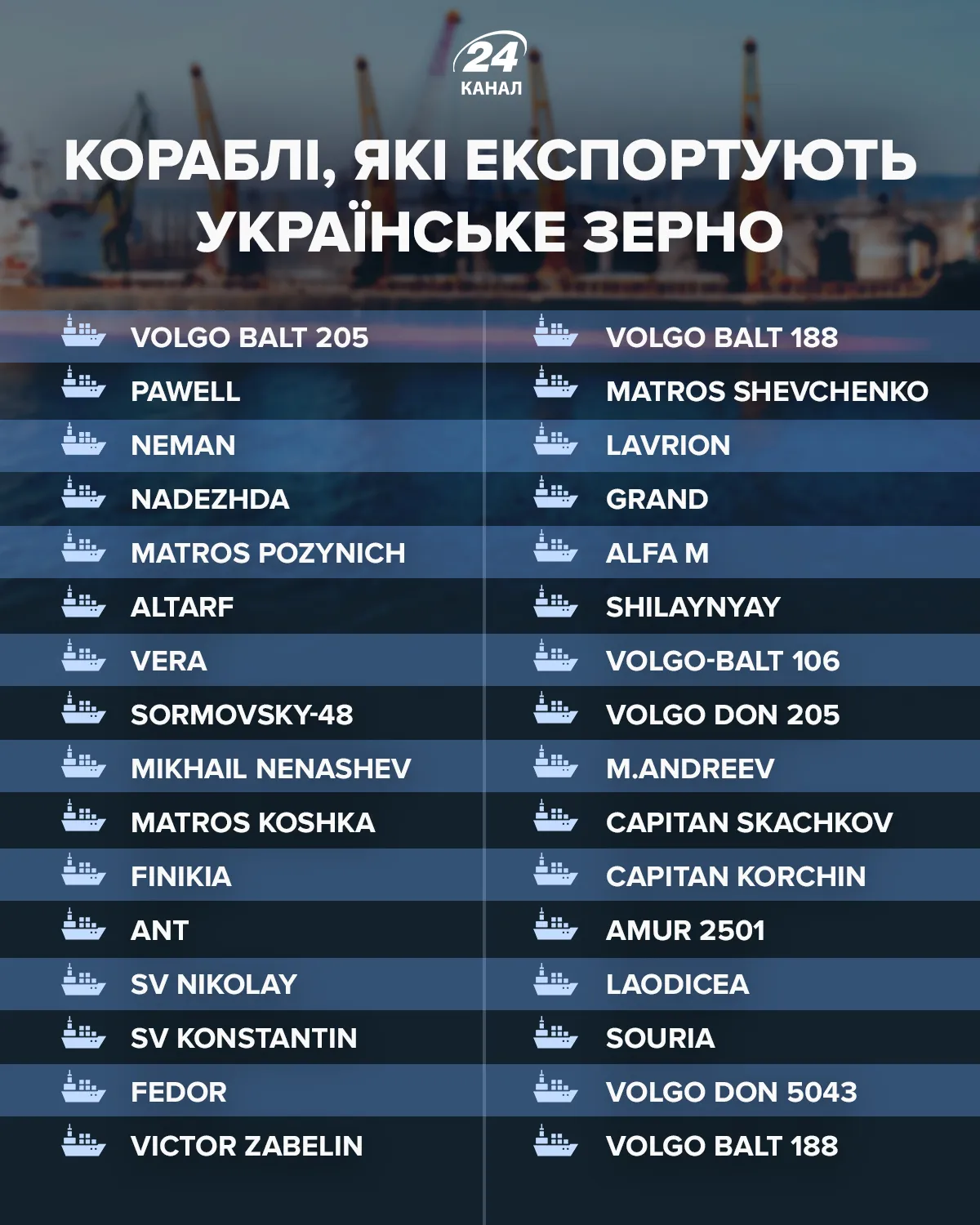 Корабли, причастные к вывозу россиянами украинского зерна / Инфографика 24 Канала