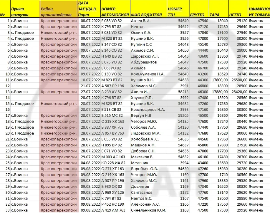 Об этом свидетельствуют соответствующие документы, где указаны даже номерные знаки машин, ячмень из которых грузили на NEMAN.