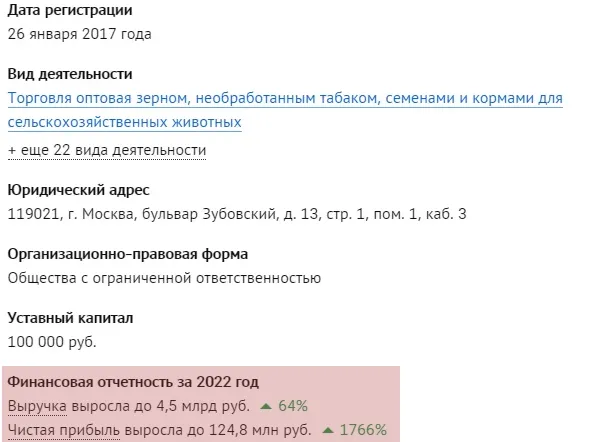 Дела у "Фрегата" пошли в гору после захвата оккупантами украинского Юга / Скриншот с российского сайта проверки контрагентов