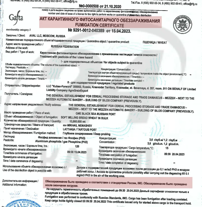 Поскольку никаких документов, свидетельствующих о российском происхождении зерна, предоставить никто не может, работники россельхознадзора и морских терминалов изготавливают бумаги уже непосредственно перед загрузкой на корабли. На судах проводят и фумигацию (обработку от насекомых), и необходимые исследования на наличие в продукции болезней и паразитов.