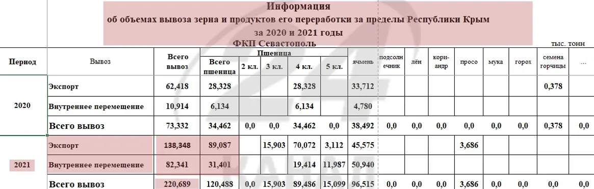 Так, за весь 2021 год из всех портов Крыма оккупанты отправили за границу (экспорт + перемещение в Россию) рекордных на тот момент 220 тысяч тонн зерна.