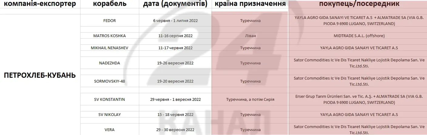 Каждая из них либо отправляла судно напрямую в страну-заказчика, или же направляла его в порт "Кавказ". В последнем случае получателями грузов могли быть совсем другие компании. Если конечной точкой маршрута зерна были страны типа Сирии или Ирана, рашисты могли сразу указывать заказчика.