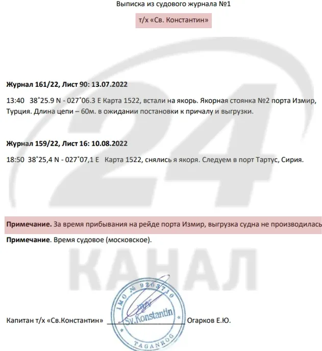 SV KONSTANTIN (IMO 9203710) направлялся в Измир, ведь товар должны были купить турки / Фото источников 24 Канала