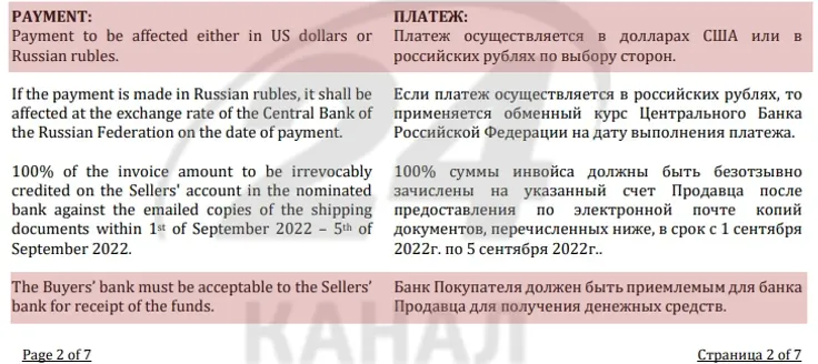 "Довоенный" контракт, через приложение к которому россияне продали ячмень / Фото источников 24 Канала