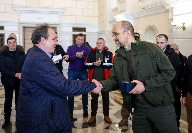 Заместитель руководителя Офиса Президента Кирилл Тимошенко называет железнодорожников "железными людьми". Он и премьер Денис Шмыгаль вручили им награды.