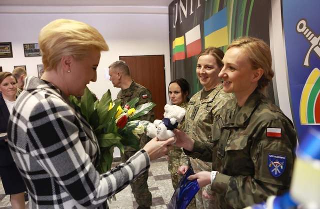 Агата Корнхаузер-Дуда обратилась к участникам встречи и высказала лучшие пасхальные пожелания (греко-католики празднуют его 17 апреля) от себя и мужа. Она также поблагодарила всех солдат, офицеров и волонтеров за помощь украинским беженцам.