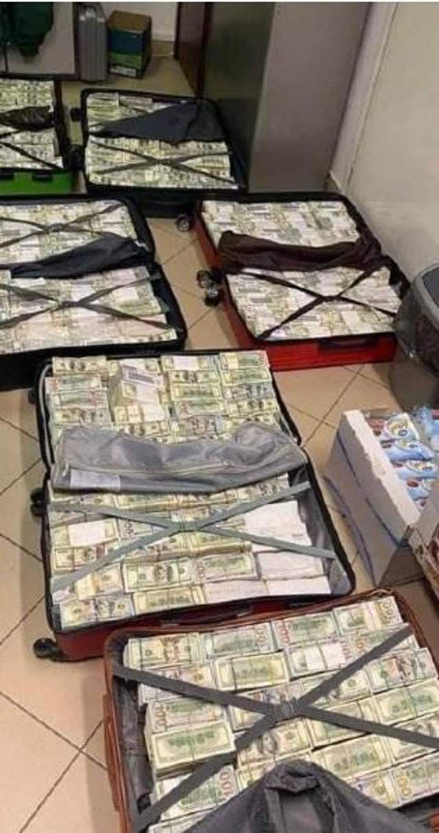 К своему сообщению он прикрепил фото чемоданов, наполненных деньгами.