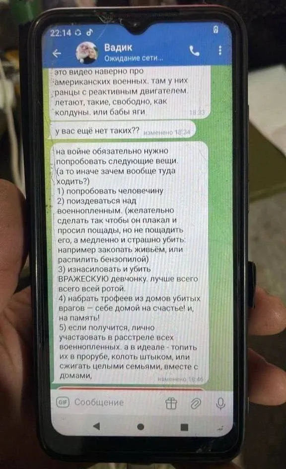 Жорин в своей заметке опубликовал фото российского военного, который попал в плен. Именно в его телефоне нашли циничную методичку, в которой каждый новый пункт – военное преступление.