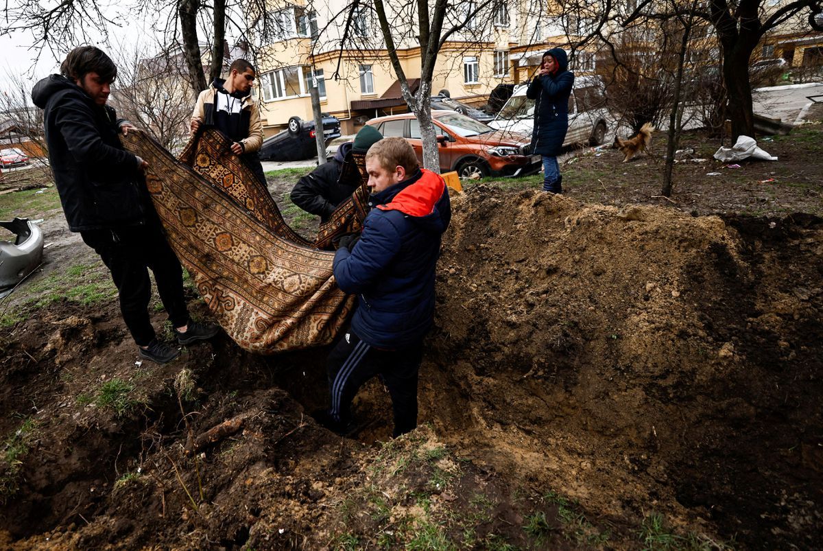 После освобождения Бучи тела погибших искали и забирали из подвалов, посадок, российских блиндажах в течение нескольких недель. В моргах не хватало мест. Местные были вынуждены закапывать найденных убитых во дворах, там тела ждали эксгумации.