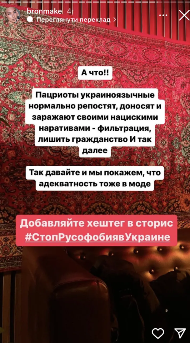 - "додавайте хештег в сторіз "стоп русофобія в Україні".