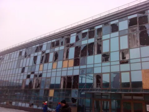 Розбиті вікна у будівлі вокзалу в Донецьку