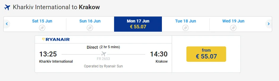 У день запуску рейсу полетіти з Харкова до Кракова можна буде за ціну від 55 євро