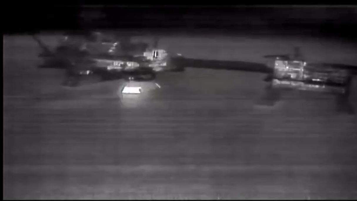 Як повідомило поінформоване джерело в СБУ, з бортової камери безпілотника видно успішне влучання в район газотурбінної установки платформи.