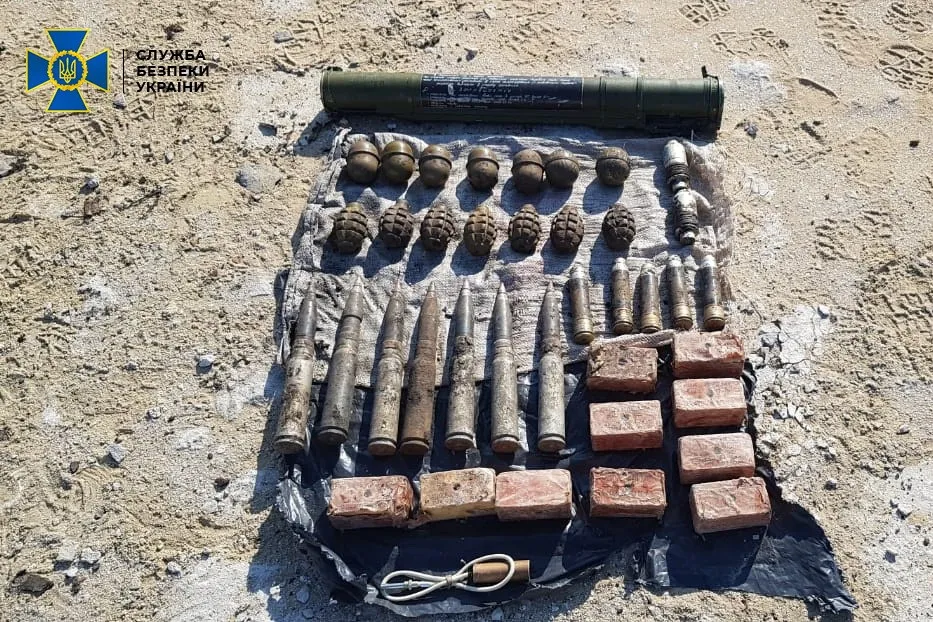 Зокрема, там правоохоронним органам вдалося виявити: 3 тротилові шашки, артилерійський снаряд калібру 152 міліметри, 3 гранати Ф-1 та 500 набоїв різного калібру.