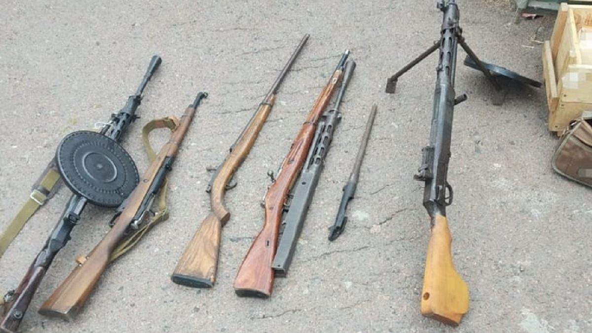 Під час обшуку у гаражі та помешканні підприємця правоохоронці виявили та вилучили три кулемети Дегтярьова, чотири гвинтівки калібру 7,62 міліметра, приціл до ручного протитанкового ракетного комплексу Метис, понад 1200 набоїв різного калібру, а також глушники до автомата АК-74.